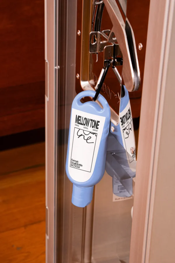 This cosmetic tube mockup is displayed hanging in a functional lifestyle setting, offering a unique and practical branding perspective. Ideal for cosmetic, personal care, and travel-size product branding across contemporary packaging projects.