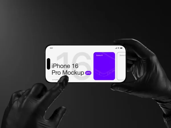 This collection includes high-quality iPhone 16 Pro branding mockups designed for sleek, high-contrast digital presentations. The set features smartphones held in hands with dark, dramatic lighting and modern compositions, ideal for showcasing app interfaces, UI flows, and mobile branding. Perfect for designers, agencies, and tech brands, these PSD mockups provide a bold and professional way to present premium mobile experiences.