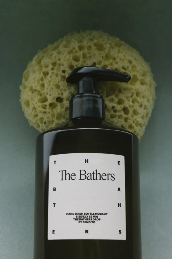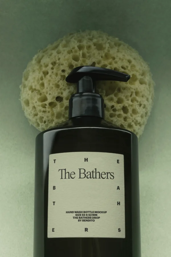 This hand wash bottle mockup is showcased in a soft, balanced environment designed to emphasize realistic scale and everyday usability within a refined visual setup. Ideal for cosmetic branding, wellness product design, modern packaging systems, and hygiene-focused brand presentations.