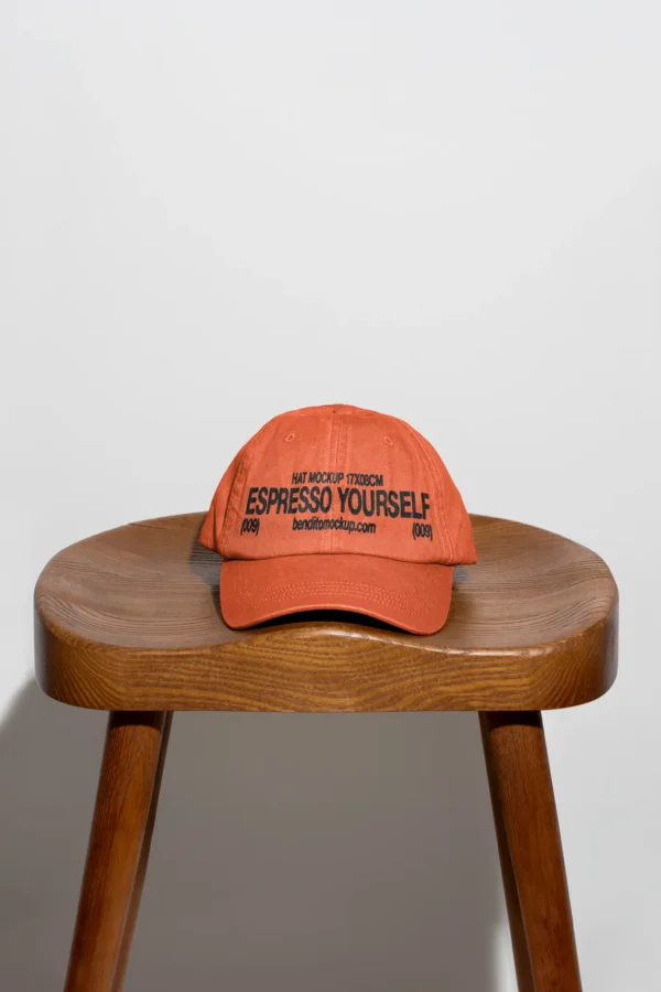 A minimal hat mockup placed on a simple surface with controlled lighting, allowing full focus on branding without visual distraction. Suitable for apparel branding, product-focused identity systems, fashion lookbooks, and clean commercial brand visuals.