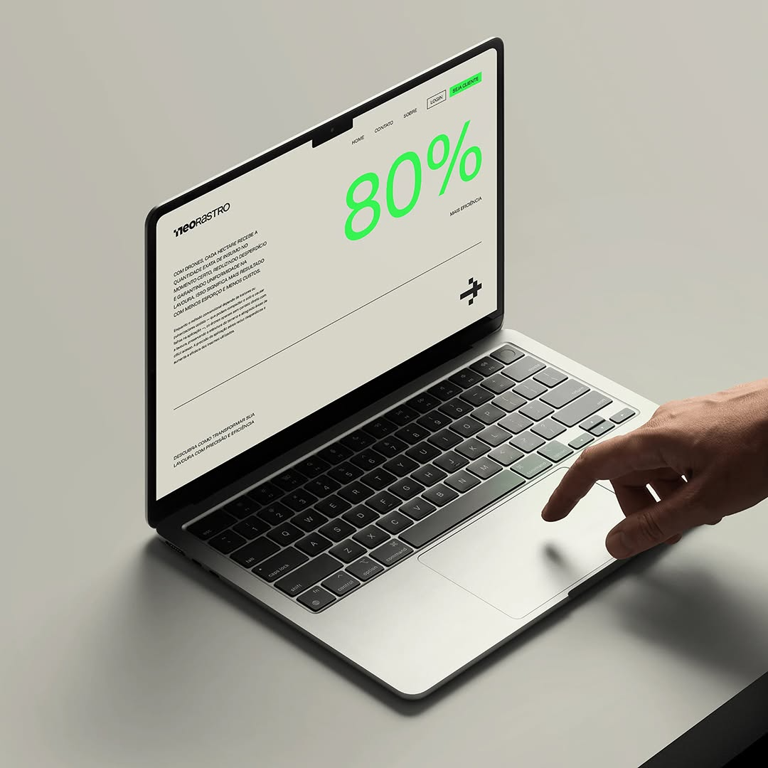 Neorastro blends neon yellow, bright green, and minimal black typography to deliver a futuristic and sharply structured visual identity. Its mockups span editorial layouts, stationery, packaging, digital screens, and large-scale environmental displays.
